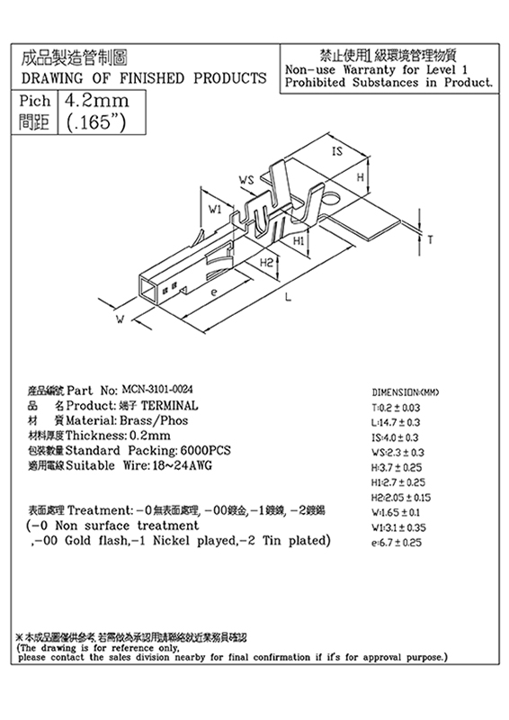 Treatment: -0 Non surface Treatment, -00 Gold flash, -1 Nickel played, -2 Tin plated)