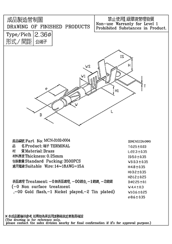 Treatment: -0 Non surface Treatment, -00 Gold flash, -1 Nickel played, -2 Tin plated)